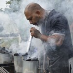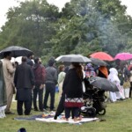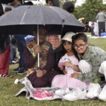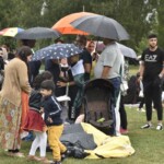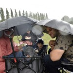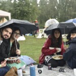- Så fik vi den første regnskylle, men folk blev stående og siddende hvor de var. Selv maden var igang