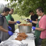 Da vi nåede til maden ca. kl 13.00 så startede madudleveringen egentlig fint, men vi fandt hurtigt ud af at hvor vi havde forbedret selve madproduktionen havde vi ikke set en flaskehals komme i selve serveringsdelen – så den står for skud til næste gang.