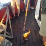 Skipper og assistent var nogle hyggelig fyre, som ikke var blege for selv at tage en stang i hånden, og det gav ind imellem god stemning med grin og grimasser.