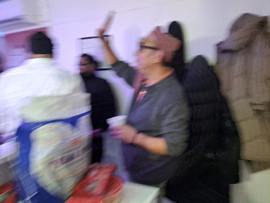 Tilbage i lokalet fik vi igen en kop varm te og så kom der en masse søde sager på bordet, som folk selv havde slæbt med – enten bagt eller købt. Jeg har ihvertfald taget 1½ kg på, under hele aftenen 🙂