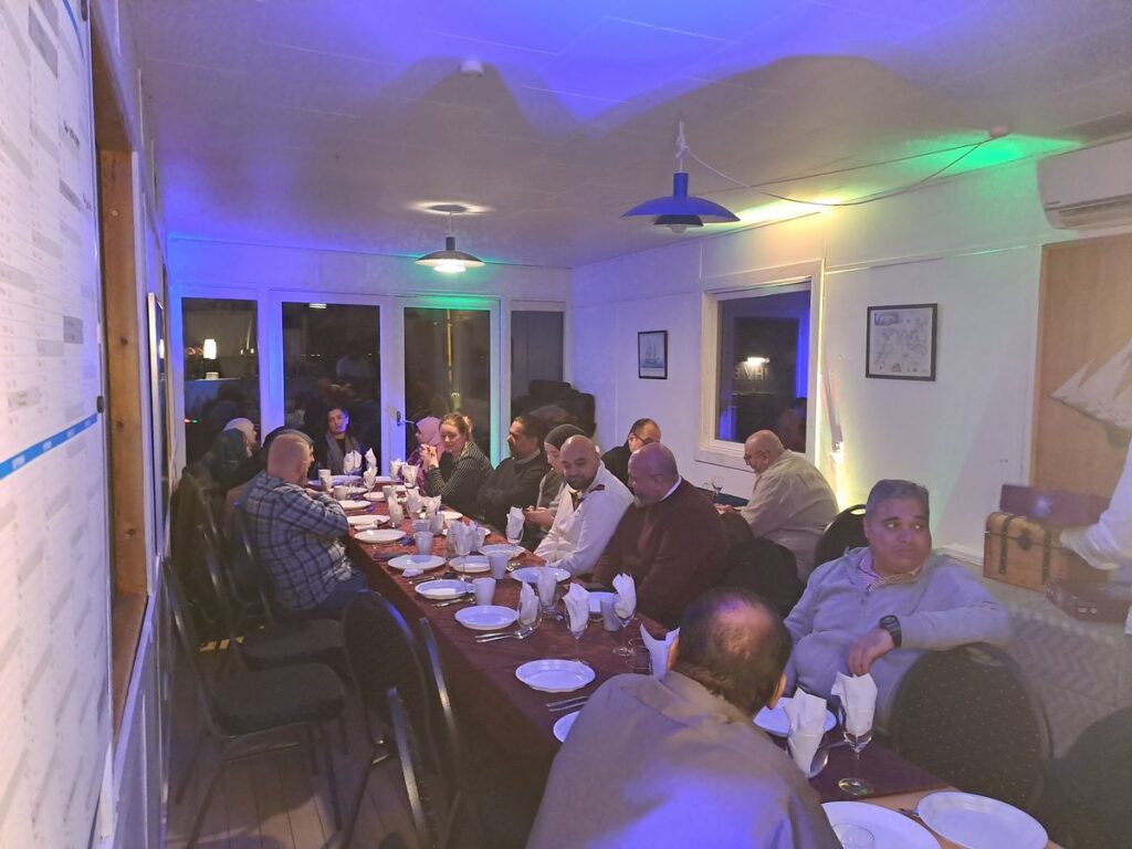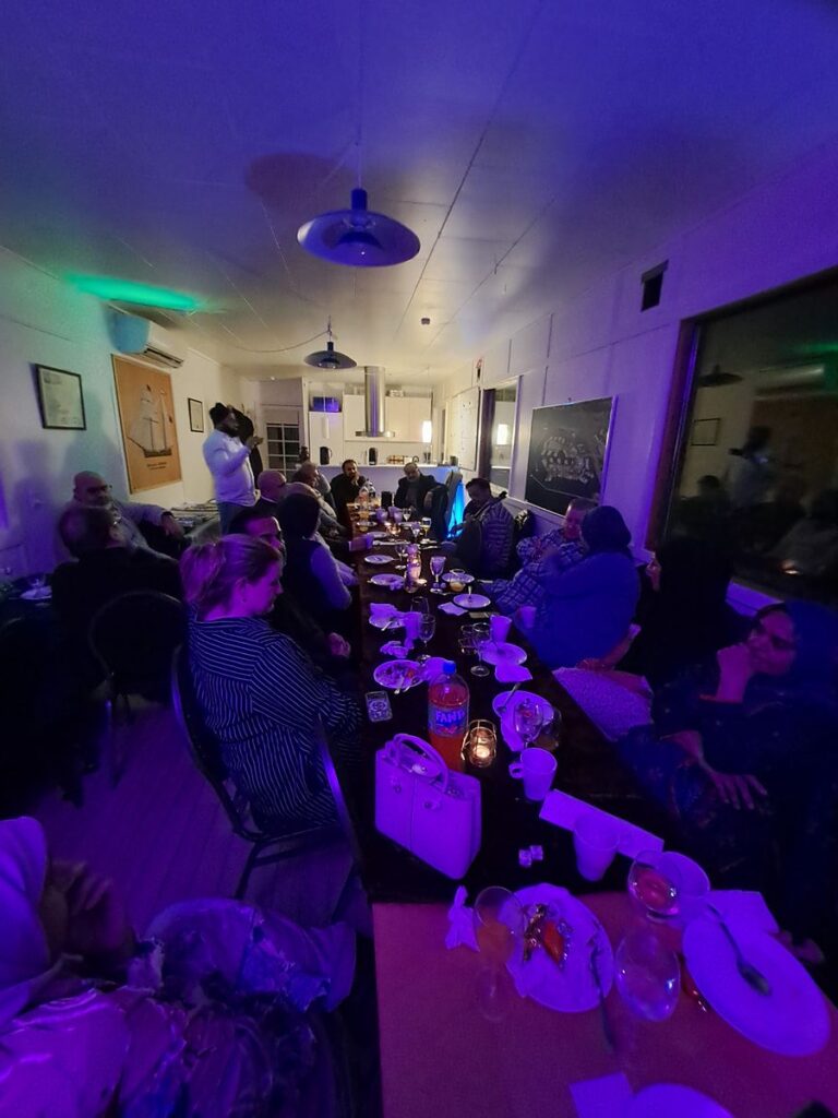 Vi skulle være i Brøndby Havn, hvor der både er lokale og nødvendige faciliteter, men der er faktisk også ret hyggeligt i havnen. Inden aftenen, så havde vi købt ind af hvad vi nu skulle bruge til drikkelse, dug osv. Det var egentlige ikke så slemt at komme igennem, fordi vi denne gang havde valgt at få catering udefra.